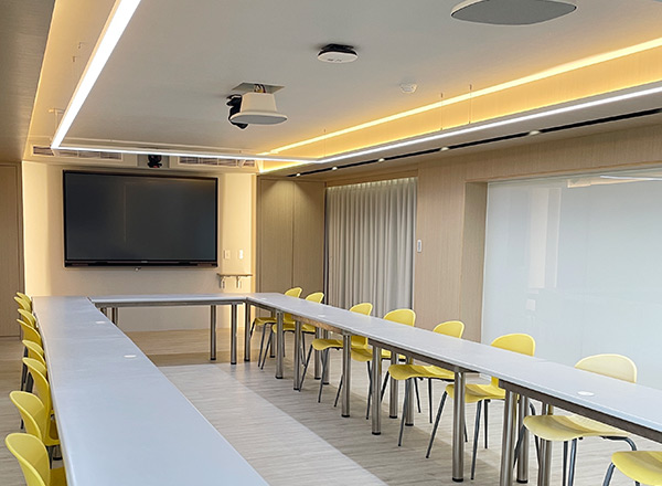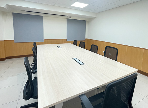 而為降低室內溫度並減少冷氣使用,針對辦公區域日照較強的西曬區域加裝隔熱貼與遮光窗簾,提升整體建築隔熱效能。並於2024年完成公共區域空調溫控面板之更新作業,統一設定冷氣溫度下限為24°C,以兼顧舒適度與節能目標。